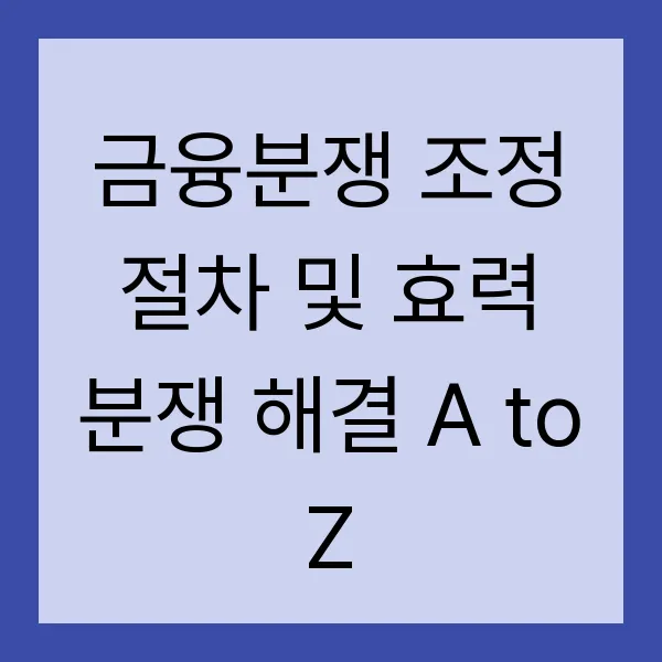 금융분쟁 조정 절차 및 효력 분쟁 해결 A to Z
