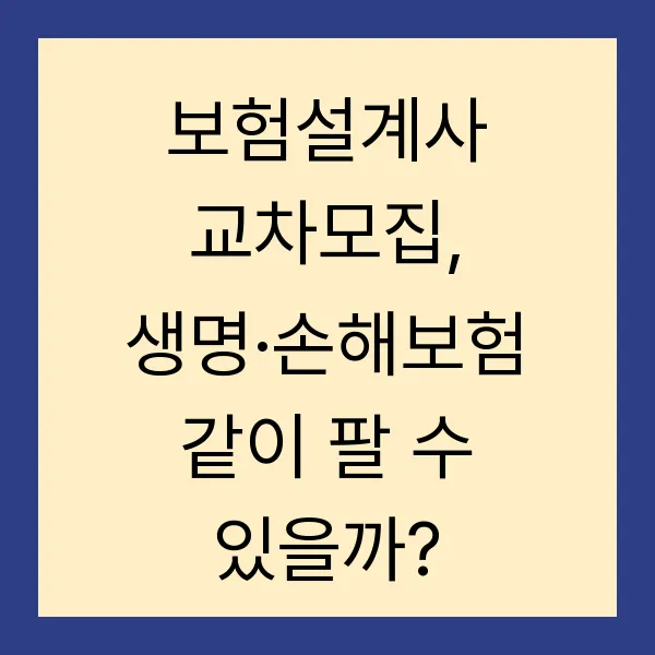 보험설계사라면 누구나 한 번쯤 고민하는 교차모집! 생명·손해보험, 같이 팔면 수입도 짭짤하고 고객 만족도도 높아지지 않을까 하는 기대감, 뿜뿜! 하지만 막상 교차모집을 시작하려니 궁금한 점 투성이죠? 어디까지 허용되는지, 장단점은 무엇인지, 또 어떤 함정을 조심해야 할지, 제대로 알고 시작해야 낭패를 면할 수 있습니다. 이 글에서는 교차모집에 대한 모든 궁금증을 속 시원하게 해결해 드립니다! 핵심 정보만 쏙쏙! 실제 사례까지 곁들여 이해도 팍팍! 자, 그럼 교차모집의 세계로 함께 떠나볼까요?