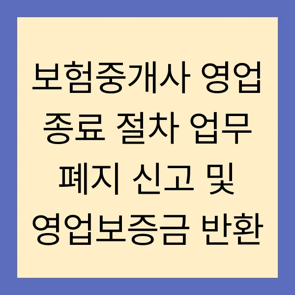 보험중개사 영업 종료를 고려하고 계신가요? 혹은 갑작스러운 상황으로 인해 어쩔 수 없이 폐업을 결정해야 하나요? 업무 폐지 신고부터 영업보증금 반환까지, 복잡한 절차를 쉽고 정확하게 안내해 드립니다. 관련 법규와 필수 서류, 그리고 꼭 알아야 할 꿀팁까지, 이 글 하나면 모든 걱정 끝! 지금 바로 확인하세요! (보험중개사, 영업 종료, 업무 폐지, 영업보증금, 금융감독원)