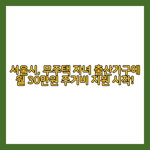 서울시, 무주택 자녀 출산가구에 월 30만원 주거비 지원 시작!