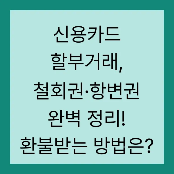 신용카드 할부! 삶의 질을 높여주는 편리한 결제 방식이죠? 하지만 덜컥 구매했다가 후회하는 경우도 종종 생깁니다.ㅠㅠ 이럴 때 당황하지 않고 소비자의 권리를 행사할 수 있도록 할부철회권, 항변권, 그리고 환불받는 비법까지 낱낱이 파헤쳐 드립니다! 핵심 키워드는 '할부철회권', '할부항변권', '환불'이며, 서브 키워드로 '신용카드', '할부거래', '소비자 권리', '분쟁 해결' 등을 다룹니다. 이 글을 통해 현명한 소비 생활을 시작하세요!