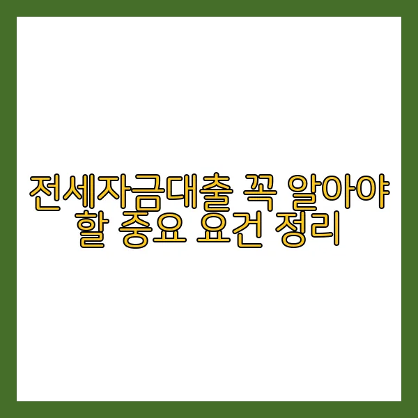전세자금대출은 주거 안정을 위해 매우 유용한 제도이지만, 까다로운 요건 때문에 어려움을 겪는 분들이 많습니다. 하지만 세대주 요건, 대출 대상 주택, 소득 요건, 보증인 요건 등을 꼼꼼히 체크하고 필요 서류를 준비한다면 무리 없이 대출을 받으실 수 있을 것입니다.