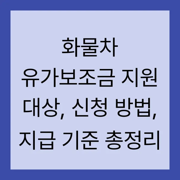 고유가 시대, 화물 운송 사업자분들의 숨통을 트여줄 화물차 유가보조금! 지원 대상, 신청 방법, 지급 기준 등 2025년 최신 정보를 완벽 정리했습니다. 꼼꼼히 확인하셔서 혜택 놓치지 마세요! #화물차유가보조금 #유가보조금신청 #유가보조금지급기준 #화물차지원 #경유보조금 #LPG보조금