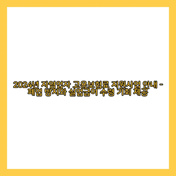 2024년 자영업자 고용보험료 지원사업 안내 - 폐업 방지와 실업급여 수령 기회 제공